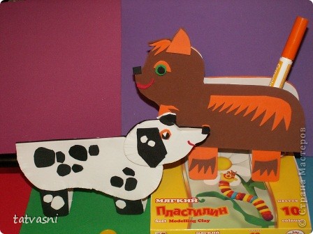 А можно самим сделать забавные подставки для карандашей и фломастеров. Такую подставку можно сделать вместе с детьми. Такую яркую красивую карандашницу можно подарить другу. Перед вами две подставки "Кот Рыжик" и "Собака долматин".